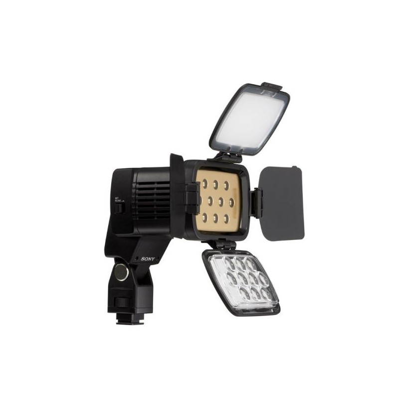 Luz LED en la cámara HVL-LBP (HVLLBP) de Sony: ideal para HVR-Z1E / HVR-V1E. El uso de LED como fuente de luz tiene las ventajas de alta intensidad (600lx, 1m), vida útil prolongada (10,000 horas) y bajo consumo de energía (16w).La HVL-LBP está diseñada para proporcionar la dispersión óptima para disparos en gran angular con la HVR-V1E: se ilumina con una intensidad uniforme en todo el campo de visión. Usando la lente condensadora adjunta, puede concentrar la luz en el centro de la imagen. El difusor adjunto permite suavizar las sombras y reducir el contraste.