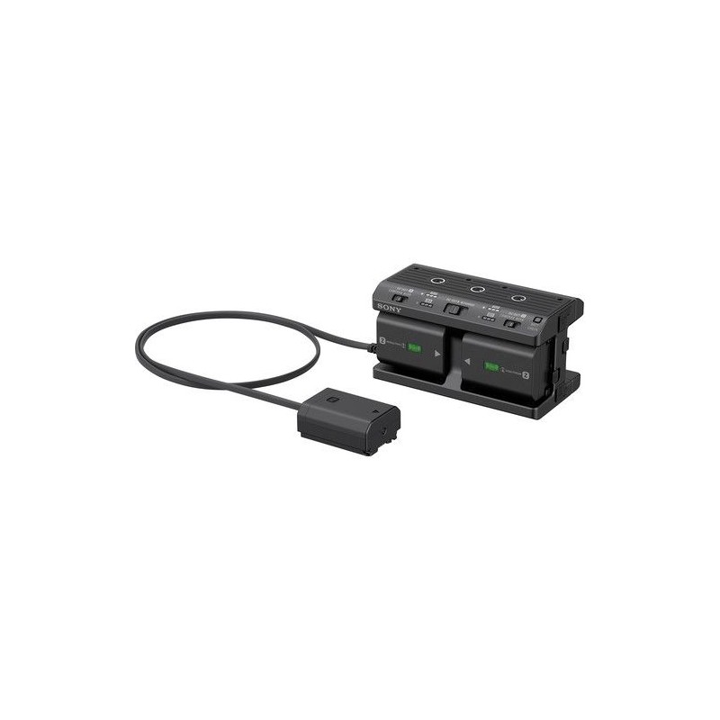 Extiende el tiempo de disparo Cargue rápidamente las baterías Luz indicadora LED de tres niveles Seis zócalos de montaje de 1/4 "-20 Carga cuatro baterías en 480 minutos Para cámaras tipo NP-FZ100 y NP-FW50 Dos puertos USB para dispositivos de carga Incluye dos paquetes de baterías NP-FZ100 Convierte a un paquete compacto de dos baterías Sostiene hasta cuatro paquetes de baterías NP-FZ100